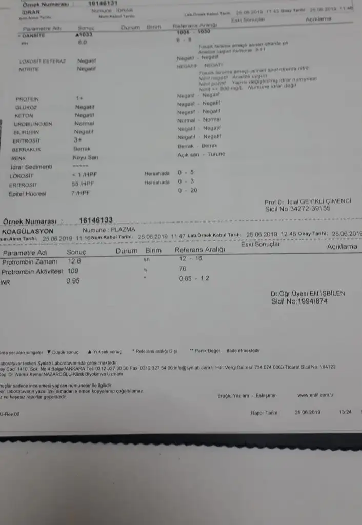 Bu be demek tecrubelıler enfeksıyon var gene ya of bıde pıhtılaşma baktırdım bısey cıktı anlamadm
