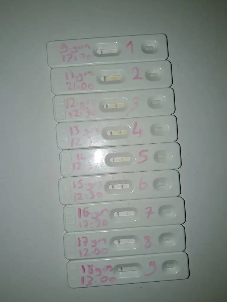 Yok canim olmamis malesef daha.. sabret bakalim cikacaktir inşallah sakın testleri birakma duzenli takibe devamEki Görüntüle 2283584 Eki Görüntüle 2283583Aselece en koyu olan 15 gun canim