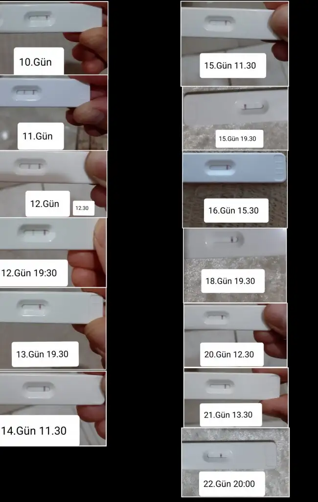 12.gun akşam 10 da yaptıgım test diğer ikisini aynı anda 14.gün 17 00 da yaptım Değerlendirme bekliyorum