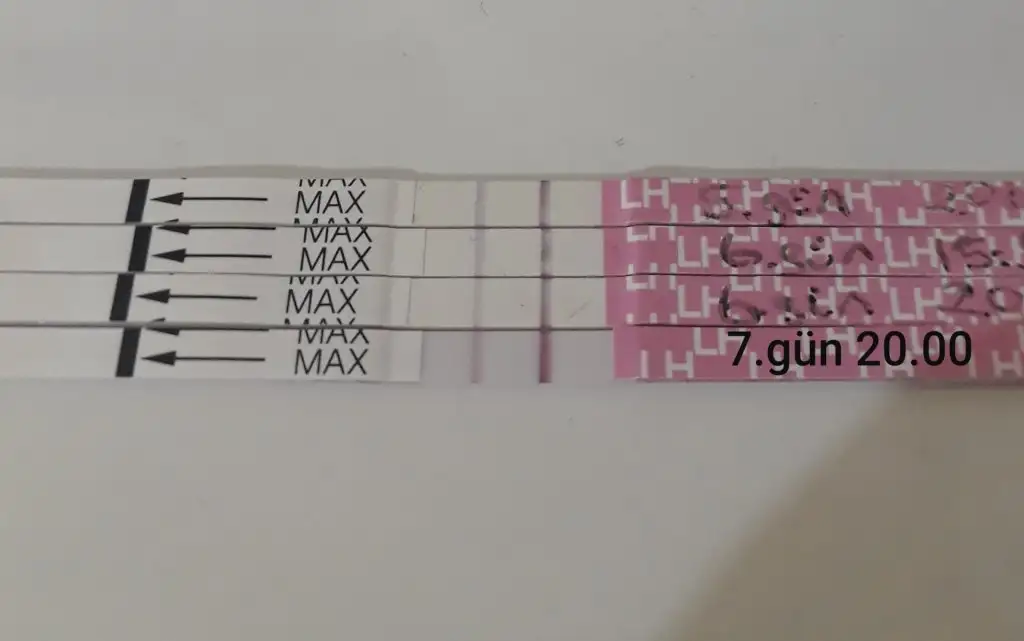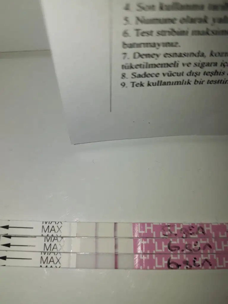 Devam et canim henüz yumurtlaman olmamış sürekli aynı saatte yap2 saat oncesinden sıvı alımini kesiyorum zaten testleri oyle yapiyorum.her aksam 20de yapacam testleri.bugun ki de boyle ciktiEki Görüntüle 2612582