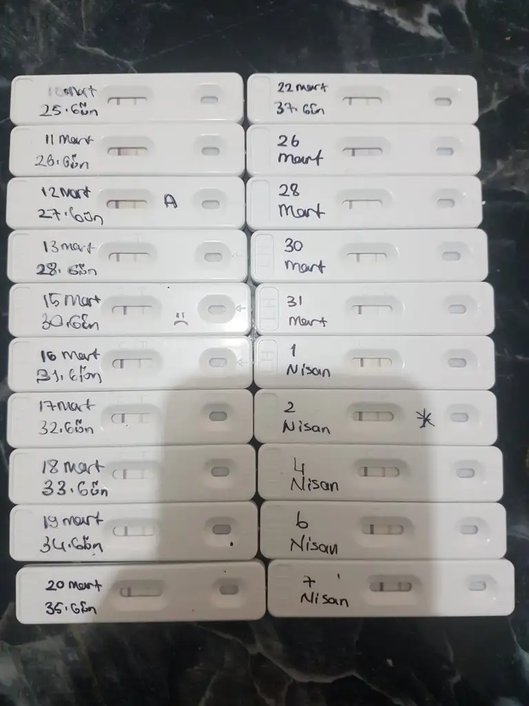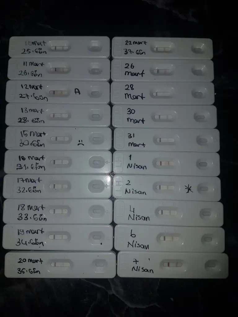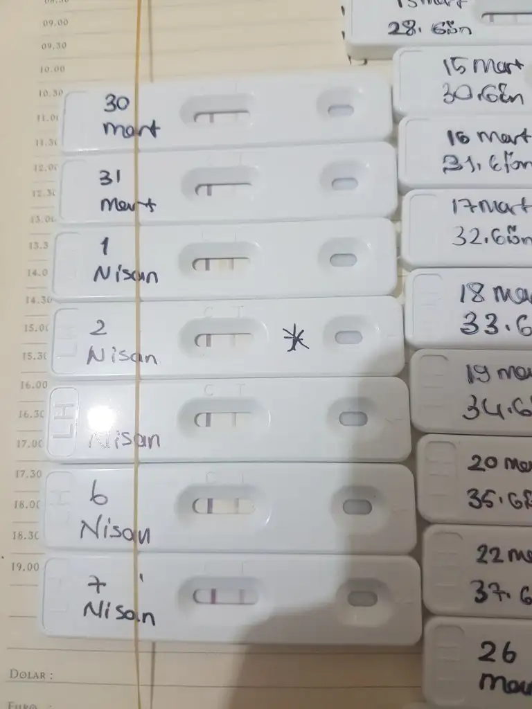 Yaptım yaptım. Hem çubuk test kullandım hem kaset tipi olanlardanBaska marka testlerle ovulasyon denemesi yap bakalim ayni mi olacak. Bazi testler firma kaynakli yanlis tespit ediyor..