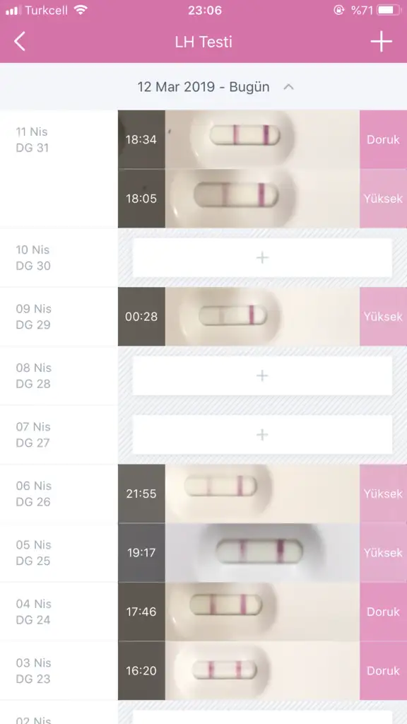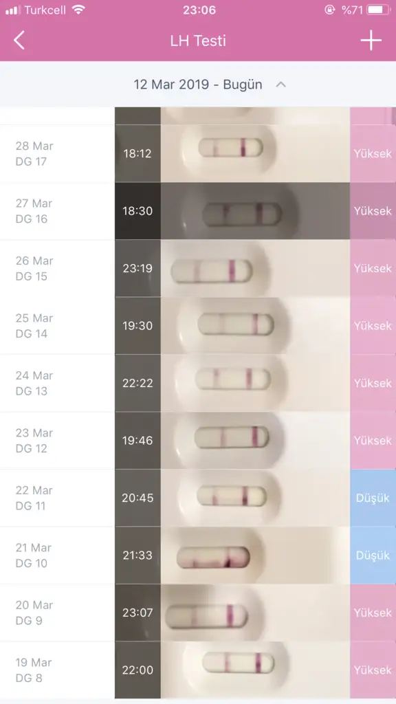 Testlerin tarihi ve saatleri kac her gun ayni saatlerde mi yapiyorsun testleri. Bastan 2. Pik olmus ama 3 gun koyu devam etmesi beni dusundurdu farkli zamanlamalarda yapmis olman testleri etkiler canim.Kizlar yardimci olurmusunuz biz dun birlikte olduk sonra yaptm cift cizgiyi gordum ustten 2.siradaki bikac tane yaptm alttakilerde bugune ait yardimci olurmusunuz