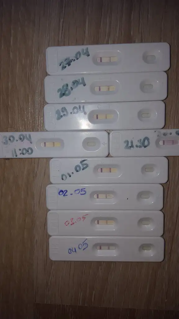 Merhaba herkese, bu ay işin içinden çıkamadığım bir durum var. Sat tan sonraki dönemde ovulasyon testi yaptım görsele ekliyorum. 23 nisan akşam-24 nisan sabah pik olmuş gibi geldi. Sonra da silindi zaten. Sonra test yapmayı bıraktım. Biraz akıntım olunca 3 mayısda testi tekrarladım ve yine pik gibi sonuç aldım. Ovulasyon testi adet tarihine yakın koyulaşırsa hamilelik olabilir diyorlar ama benim 5 mayıs itibariyle test kısmı yine silikleşti. Sizce öncekilerde yumurtlama olmadı mı? Ya da iki kez mi oldu? Yardımcı olabilir misiniz? CAAAA800-2A00-458A-8C4C-C6E9790077E9.webp 07F58682-BBAF-4C42-BA35-380C656080B6.webp