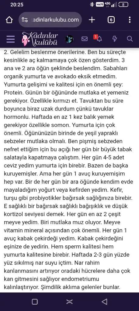 Canım burada bir diyetisyenin önerileri vardı. Sağlıklı yumurtlama için çok güzel bir liste hazırlamıştı. Dur bulursam sana aticam. Ekran resmi almıştım. Buldum sana atıyorum.