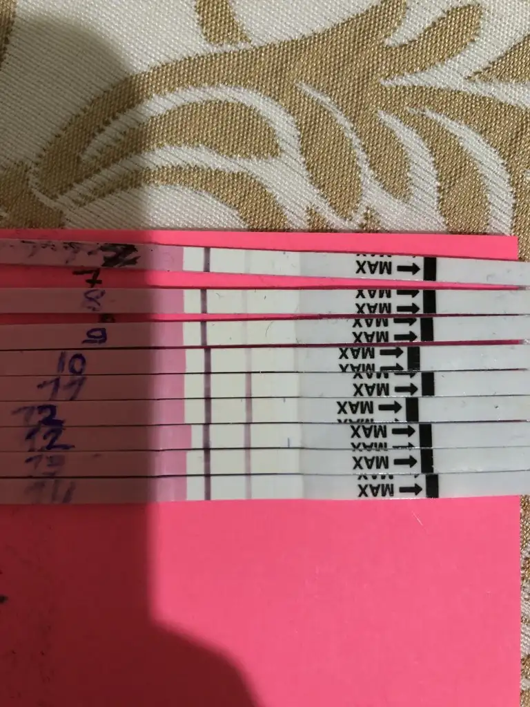 Simdi sana yaziyordumyaptim canim eve geldim simdi gelir gelmez yaptim bugün 14. günüm iste 10. gün yumurtlama oldu yollamistim ya adetimi bilmiyorim bende vallahi sürekli karisiyo 4 aydir ama 12-14 gün var 28 günde bir oluyordum bu ara 26 -24 -32 yi bile buluyo ama genelde 26.-27. gün olurum bak smfi bile duramiyorim sol bacagimin üstüne dur yollim testi