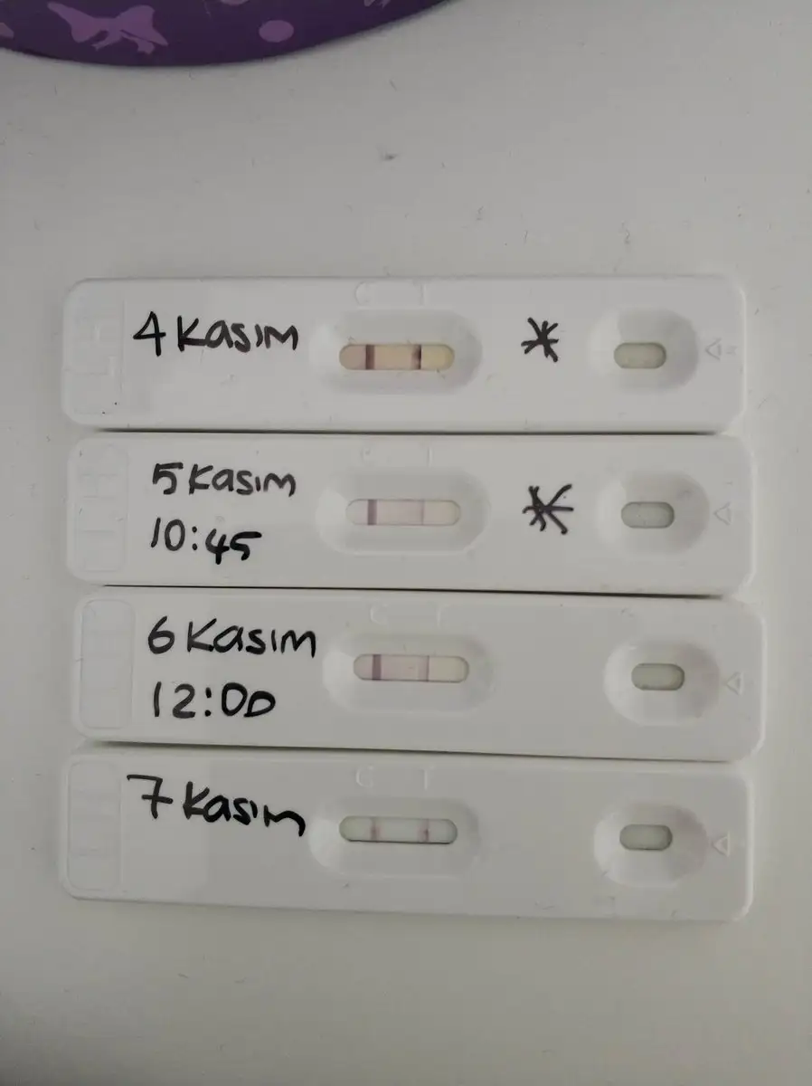 Canım senin bir iki güne pik olur gibi geliyor testlerini sabah akşam yapmanı tavsiye ederimBen birde başka bir marka test ile baska saatte iki gündür yapıyorum bu da böyle :)