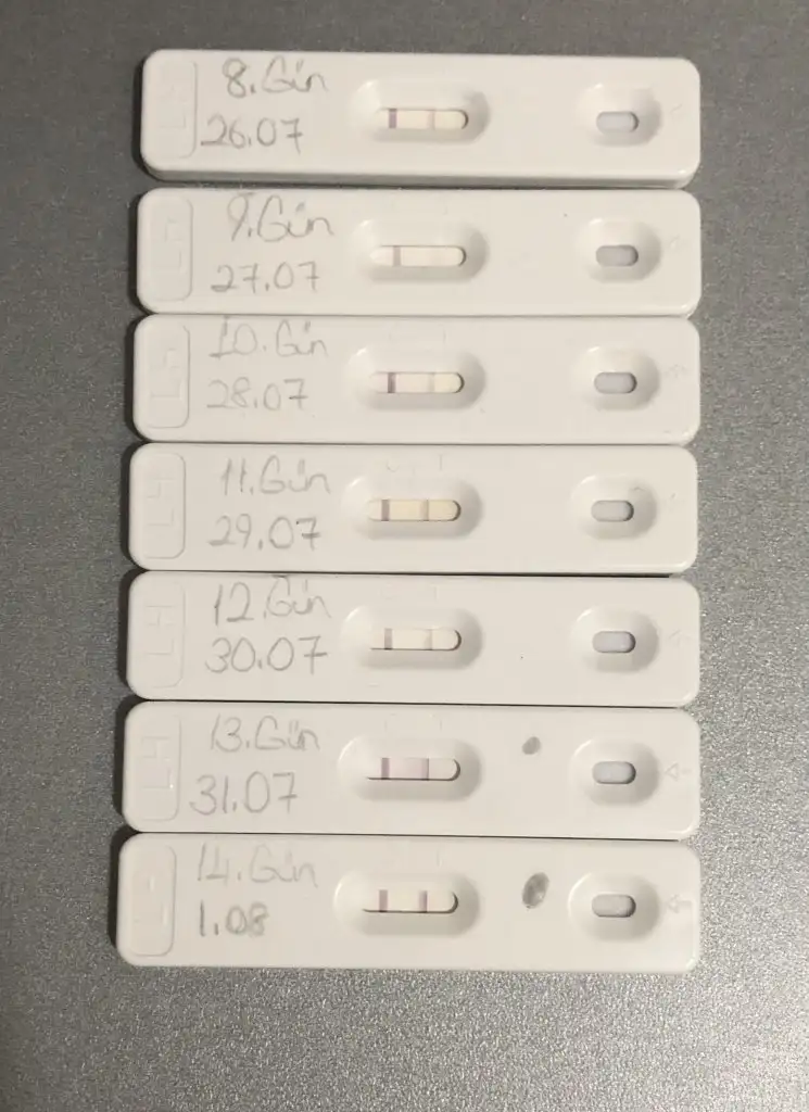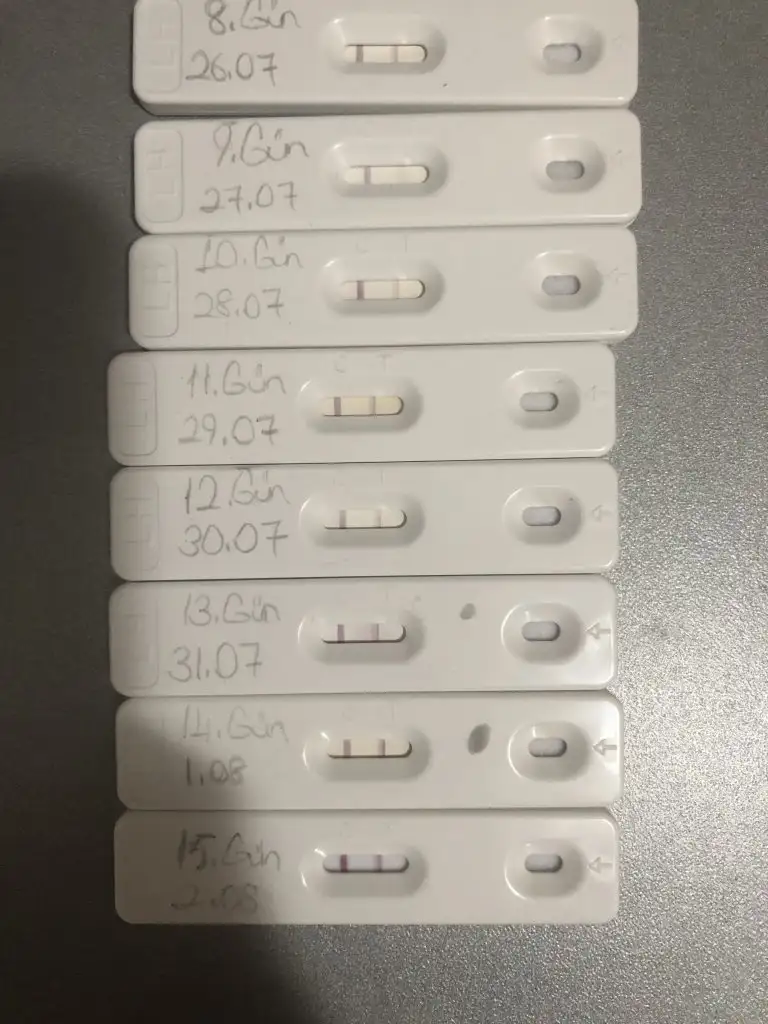 Teste devam et canım hergün aynı saatte yapıyosun dimi?Arkadaşlar yorumlarınıza ihtiyacım var!!! Dün ilk defa ovulasyon testi yaptım (24 Temmuzda reglim bitti, 26 sinda test yapmaya başladım) dün ilk gün olmasına rağmen T çizgisi gayet belirgindi ama çok koyu değildi bugün pik yapmasını beklerken silik çıktı kafam çok karışık bu durumu yaşayan var mi? Ne oldu böyle anlamadım