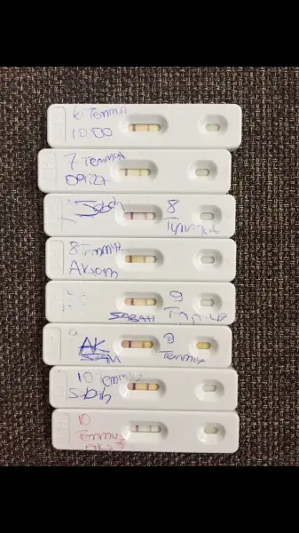 Canım bunlar benim bugünki ovulasyon testlerim . Üstte olanı sabah saat 10 buçukda yaptım altta olan ise 3 buçukta yaptım . Acaba çift çizgiyi kaçırdımmı yani pik olduda kaçırdımmı . Bana altta olan silikleşmiş gibime geldi sence hangisi daha belirgin çift çizgilerden ?