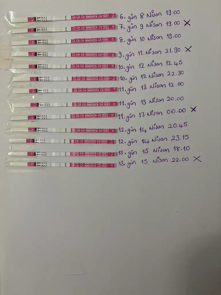 Eşimle gittim doktora ve doktor onun yanında günaşırı yani bir yapın bir yapmayın dedi. O yüzden her gün yapmak istemiyor. Doktoru dinleyelim diyorŞöyle soylim dün birliktelik olmuş öyle yazmışsınız.. bence bugünü ve yarını ve ertesi günüde değerlendirin ve bitirin... Gün aşırıya dönün... Ben bugünü pik gibi gördüm siz canlı görmüşsünüz daha iyi bilirsiniz öyleyse bugün yarin ve ertesi gün değerlendirilmeli..ama testte bide 13 Nisan pik gibi durmuş secemiyorum tam kuruyunca çizgiler daha da koyulastigi için bilemiyorum.. doktorda 17mm demiş 12sinde acaba iki yumurt ayi iki ayrı günde mi gördünüz.. riske atmayıp bence dediğim gibi yapınhatta akıntının var mı ona göre de anlarsınız uzayan şeffaf akıntı varsa demekki hala yumurtlamadasiniz