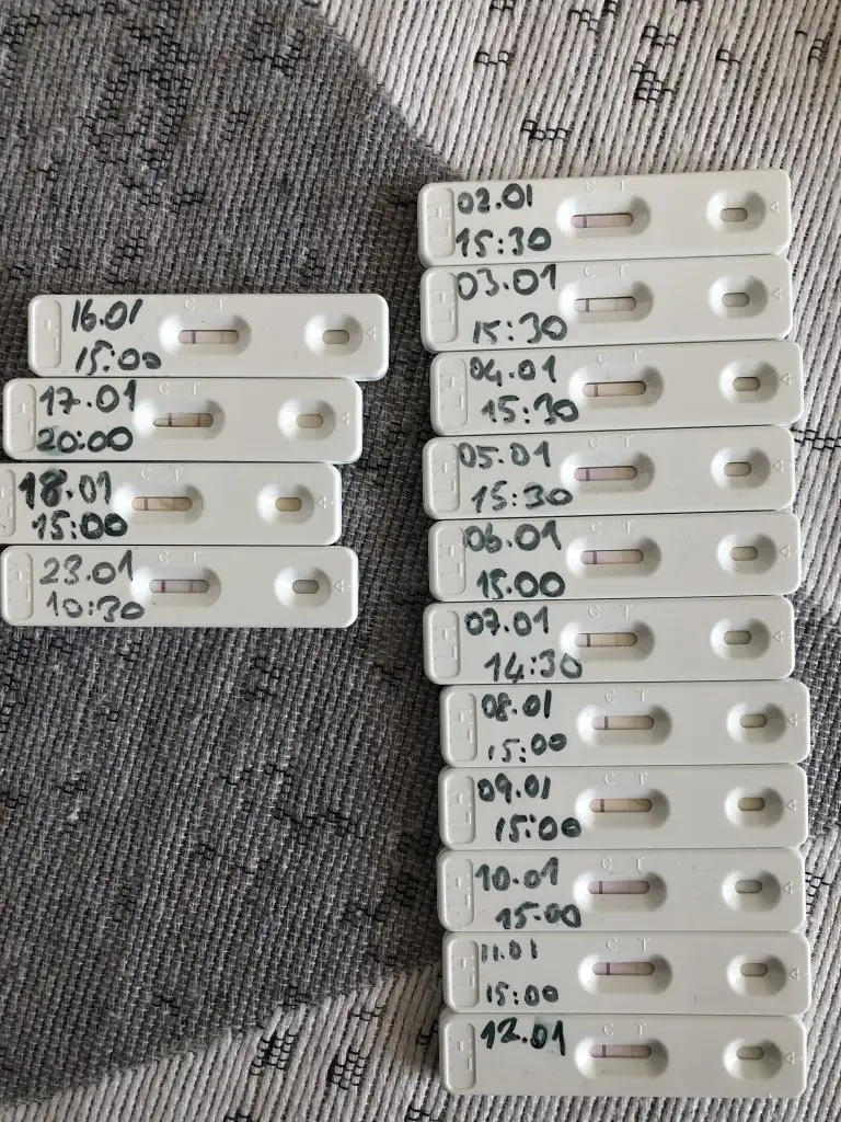 Evet biz 1inden itibaren 2 günde bir düzeninde devam ediyoruz.Bi süre ara verdim ovulasyonaaz evel tekrar yaptım yine çift çizgi