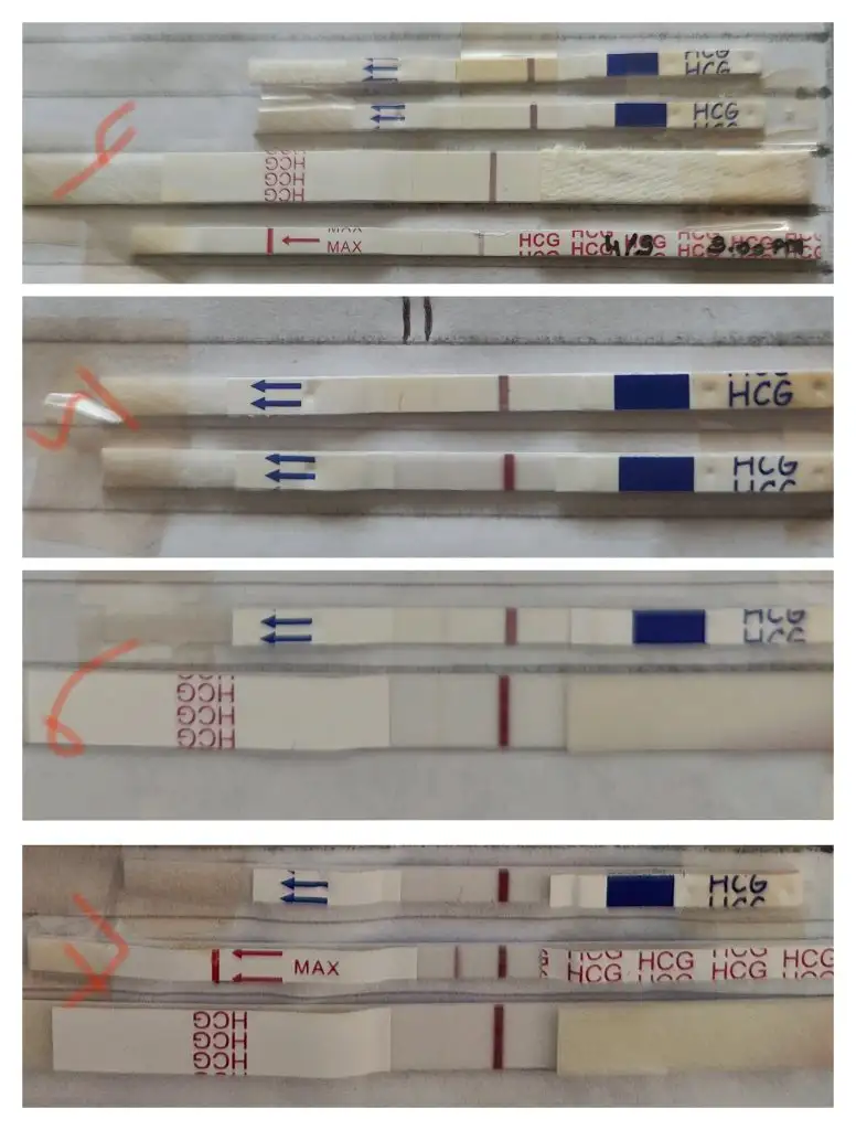 Öncelikle 19 Ağustos ovulasyon oldu, 20 sında çatladı. İlk gebelik belirtisi hissettim sonra hepsi geçti, olmadığını düşündüm.Gel gelelim BAT 2 Eylül'dü. 31 Ağustos'ta gece koyu renkli bir kanama başladı. Normalde 6 gün adet görürüm. 3 sabahına kadar 1 ped doldurmamıştır ve bitti. O akşam neden kesildi adetim, menopoza mı giriyorum diye endişe etmeye başladım. Araştırdım araştırdım ve ani diyet değişikliklerinin sıkıntı olabileceğini buldum. Mide botoksum var 21 kilo verdim. Dedim heralde bundan adetim kısaldı. Hiç kondurmadım derken yeni döngü için ovulasyon testi almıştım denemek istedim. İkisinde aynı koyulukda çıkınca, gebelik testi yaptım.sonuc yukarıdaki gibi ama beni endiselendiren.