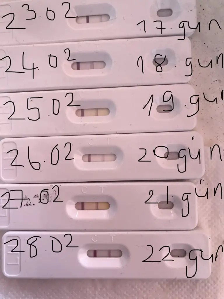 Merhabalar buraya yeni üye oldum. Çok fazla bir bilgim olmadığı için yardımınıza ihtiyacım var. 33-34 günde bir adet görüyorum. 6 aydık çocuk düşünüyoruz. İlk defa ovulasyon testi aldım. Uygulamalarda 19. Günde gösteriyor ama benim ovulasyon testimde 19 günde pil olmadı. Ovulasyon testlerimi yorumlayabilir misiniz?teste devam mı etmeliyim yoksa geçmiş mi? 19-20-21-22 günle ilişkim oldu Şimdiden çok teşekkür ediyorum