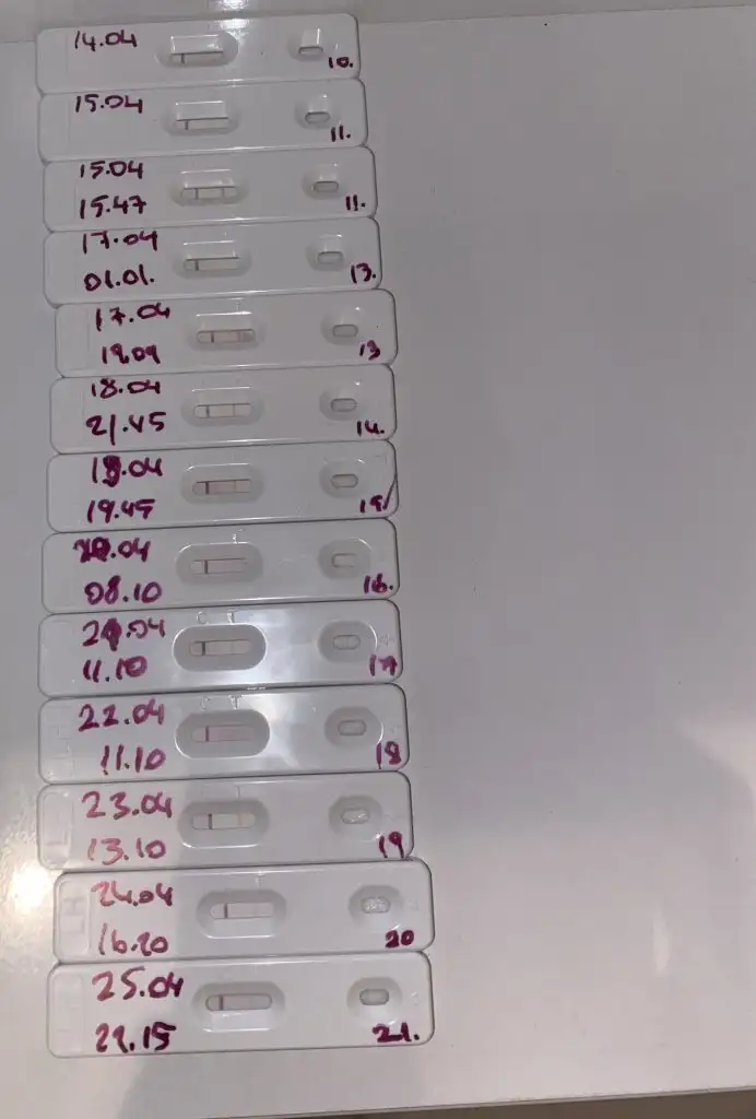 Merhaba arkadaşlar, benim testlerim de bu şekilde, 5 nisanda adet oldum 10.gün itibariyle test yapmaya başladım. Adetlerim düzenlidir 28.gün döngüsünde olurum genelde bazı günlerde en geç 30.gün olurum. Tsh 20 gün önce 7 çıktı ilaç kullanmaya başladım dün 0.20 olmuş ilaç düzenlemesi yapıldı. Bu tabloda sizce yumurtlama olmuş mu yorumlayabilir misiniz rica etsem 🥰