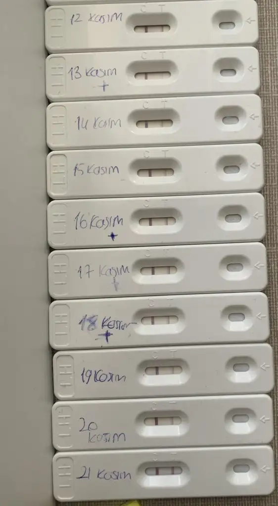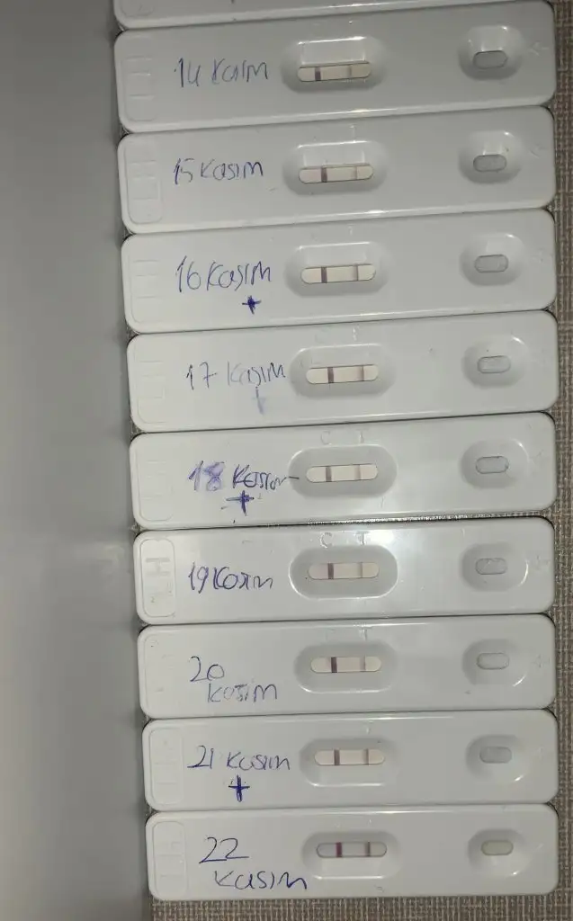 Bende çok anlamıyorum açıkçası ama yorumlardan okuduğum kadarıyla son gün yaptığınız test biraz koyu gibi duruyor.Testi yapmaya devam edin.t çizgisi c den daha koyu olduğu zamanı değerlendirin.Birde sağ köşede yazanlar saat mi bilmiyorum ama testi hergün aynı saatte yaparsanız daha net sonuç alırsınızMerhaba degerlendirebilir misiniz acaba
