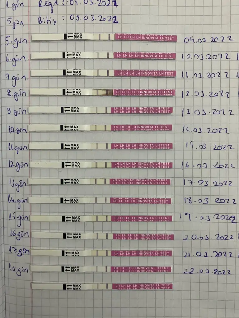 VE bugünde yaptım yine silik çıktı neden böyle oldu asla anlamıyorum. Cuma günü doktora gittiğimde yumurtan büyümüş günleri değerlendirin dedi . birer gün arayla dedi 1 nisan 3 nisan 5 nisan şeklinde ayın 9una kadar dedi. Bende 1ve 2 nisan değerlendirdim 3 nisan değerlendirmedim. acaba o gün müydü yumurtlama diye içim içimi yiyor ama tam koyu olmamıştı neyse ertesi gün daha koyu olur diye değerlendirmedikkızlar merhaba lütfen yardımcı olur musunuz çok kötüyümtestlerimin resimlerini paylaşıyorum burada pazar günü koyuydu ama o günü değerlendirmedik ama ondan önce cuma cmt değerlendirdik. pazar günü tam koyu değildi.dedim pzt daha koyu olacak demek ki o gün yumurtlama olacak bugün yaptım silik çıktı şok oldum daha koyu beklerken silik çıktı sinirden ağlayacam. nasıl olabilir gerçekten ya koyu değildi pazar günü çok net şekilde. yani bu resimlerden anladıgım pazar gunu yumurtlama olmuş bugün de çatlamış mı
