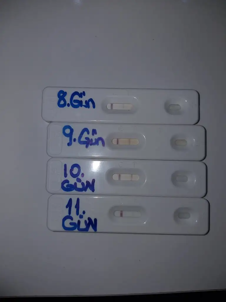 Arkadaslar 5 aydir bebek dusunuyoruz hep negatif sonucla karsilasiyorduk bu ay ovulasyon testine basladim fakat kafam cok karisti,bugun 11.gunum resimleri atiyorum bakabilirmisiniz.11.gun daha koyu cizgi beklerken silik cikti bu normalmi yoksa 9. Ve 10. Gunler yumurtlama donemimmiydi anlamadim.