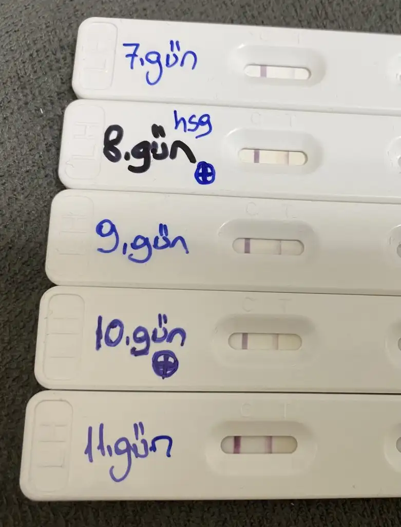 Acaba gec dollenme falan olabilir miBen normalde 11.gün başladım test yapmaya 10 tane test yaptım hepsi pozitif silik falan çıkmadı hep c çizgisyle aynı koyulukta bıraktım test yapmayı adet gününü bekliyorum