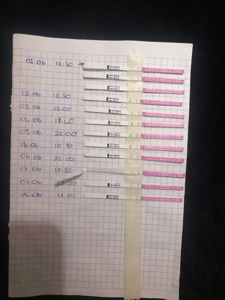 1.5 yıldır çocuğumuz olsun istiyoruz fakat hala olmadı doktor bir sorun olmadığını söyledi . Bu ay ovülasyon testi alıp denedim daha önceler de deniyorum ve o zamanlar adetten sonra 11. Gün yumurtam çatlardı . Bu ay da adetimin biriminden itibaren başladım ve 3. Gün pik gördüm o günü değerlendirdim . Hala test yapmaya devam ediyorum şuan 17. Gündeyim ve 3 gündür testler pozitif gözüküyor adet tarihim 27 si tam 10 gün var acaba yumurtam mı catlamıyor bu durumu yaşayan var mı yardımcı olur musunuz testlerimi ekliyorum