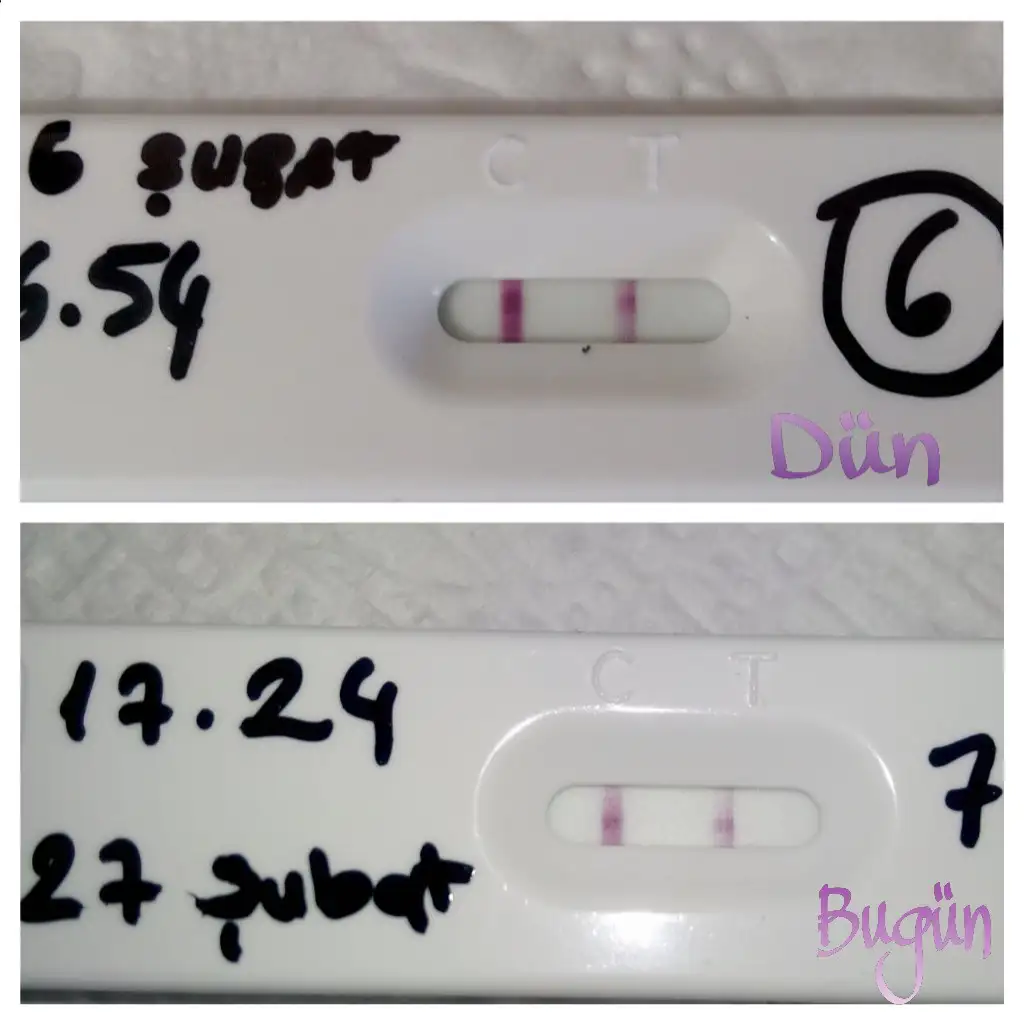MRB CNM. NORMALDE BU OVU TESLERİNİN PRENSİBİ ŞÖYLE DİYE BİLİYORUM, YUMURTLAMA OLUNCA İKİ ÇİZGİ DE KOYU LAŞIYO YUMURTLAMA OLDUGU GÜN YANİ, SONRAKİ GÜN YAPTIGINDA 2. CİZGİ SİLİKLEŞMEYE BASLADIGINDA İSE ÇATLAMA OLUYOMUŞ VE ÖZELLİKLE KOYU ÇIKTIKTAN SONRAKİ GÜNLERİ DEĞERLENDİRMEK LAZIMMIŞ..2 ÇİZGİ DE SENDE AYNI KOYULUKTA OLMADI İSE BELKİ SU TÜKETİMİN FAZLA OLMUŞTUR BU DA OLABİLİR.. İNŞALLAH GÜZEL SONUÇLAR ALIRSIN