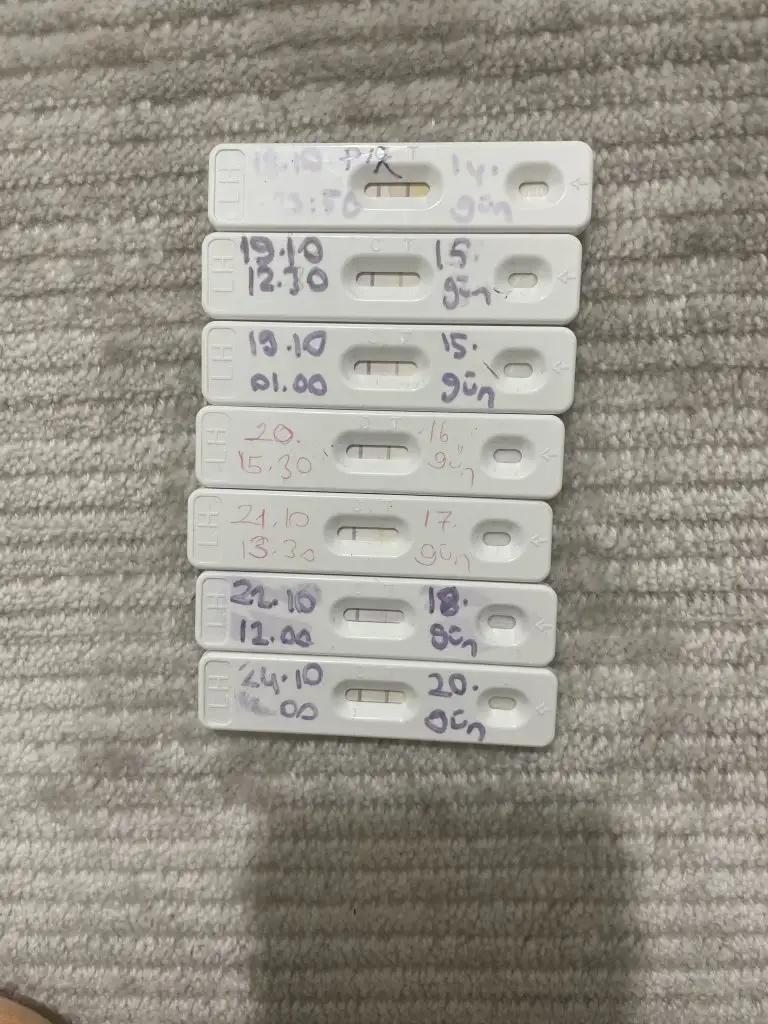 Anladım benim ondan sonraki 3 4 gün tam silikleşti. 24 ten sonraki yani. Ama 19 dan 21 e kadar biraz koyuydu. Anlamadım. Tesirm bitene kadar yaptım silikti mesela baya. 24 ü yumurtlama diye hesaplasam 25 catlama, üzerinden 10 gün geçmiş oluyor. Ayın 7 8 inde regl olmam gerekiyor. O güne kadar bekleyip olmazsam doktora bi görünürüm artık. Çözemedim bu işiOlabilir canım yumurtlama olmamıştır derken çatlamamıştır o testlerde insan yapımı sonuçta yüzde yüz doğruyu gösteriyor diyemeyizki bak bu ay aynısı başıma geldi yumurtlama gördüm aradan 14 gün geçti adet olmadım sonra ovalayın yaptım tekrar pik hatta iki gün pikti değerlendirdim silikleşti sonra Şuan beklemedeyim