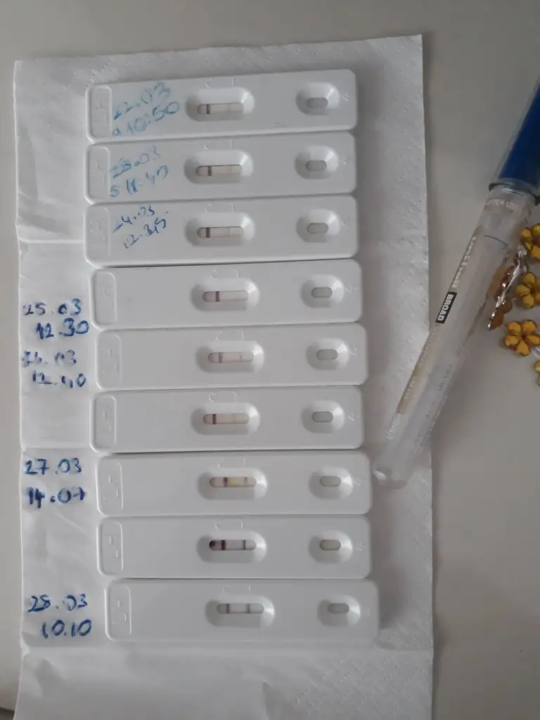kızlar 1,5 yıldır evliyim 3 aydır çocuk sahibi olmak için uğraşıyorum bu ay laboquick ovulasyon testini kullandım 2 gün çift çizgiyi gördüğüm günleri degerlendirdik şuanda beklemedeyim. bu ayda hüsrana uğramak istemiyorum :KK43: benim gibi bu testi kullanıp hamile kalanlar varmı?