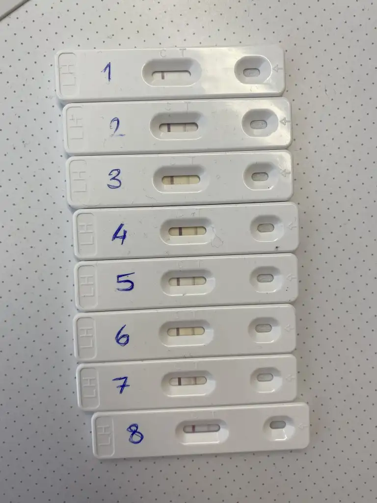 Daha olmamış pik devam ettin mi testlere7 dün. 8 bugün. İlk resimde en sondaki test dünün testi. Pik olmuş mu? Yumurtlama sorunum var. Dün 3 gibi yapmıştım. Akşam pik olmuş olabilir mi?