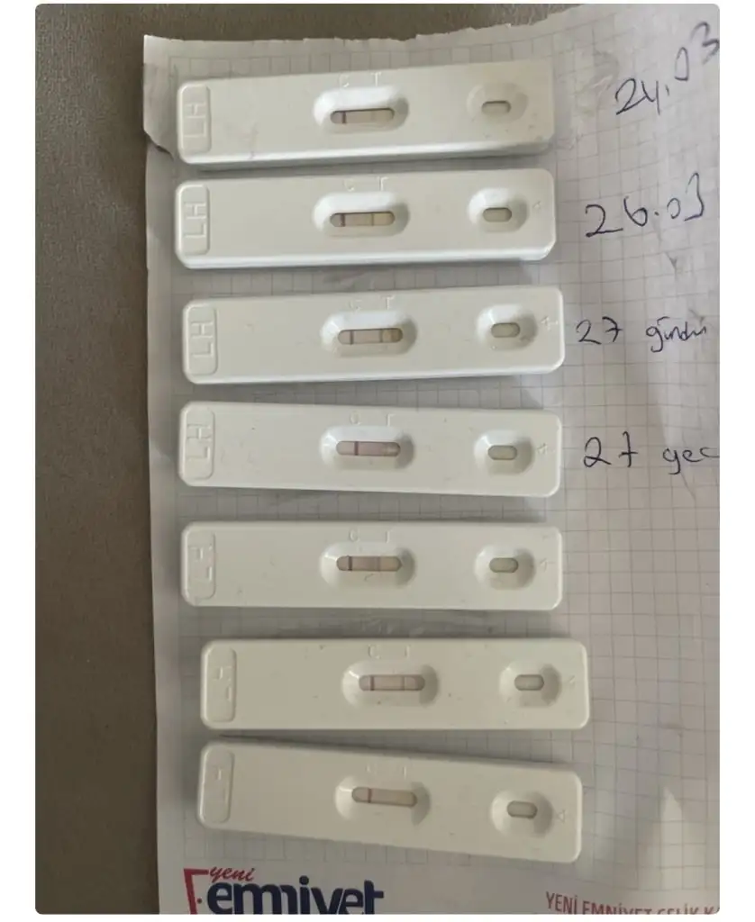 28i koyu ama pozitif değil yani o ay yumurtlama olmamış. Muhtemelen yumurtaların geç tepki veriyor. Pcosta temel sorun yumurtlama zaten bu yuzden gebe kalamıyor