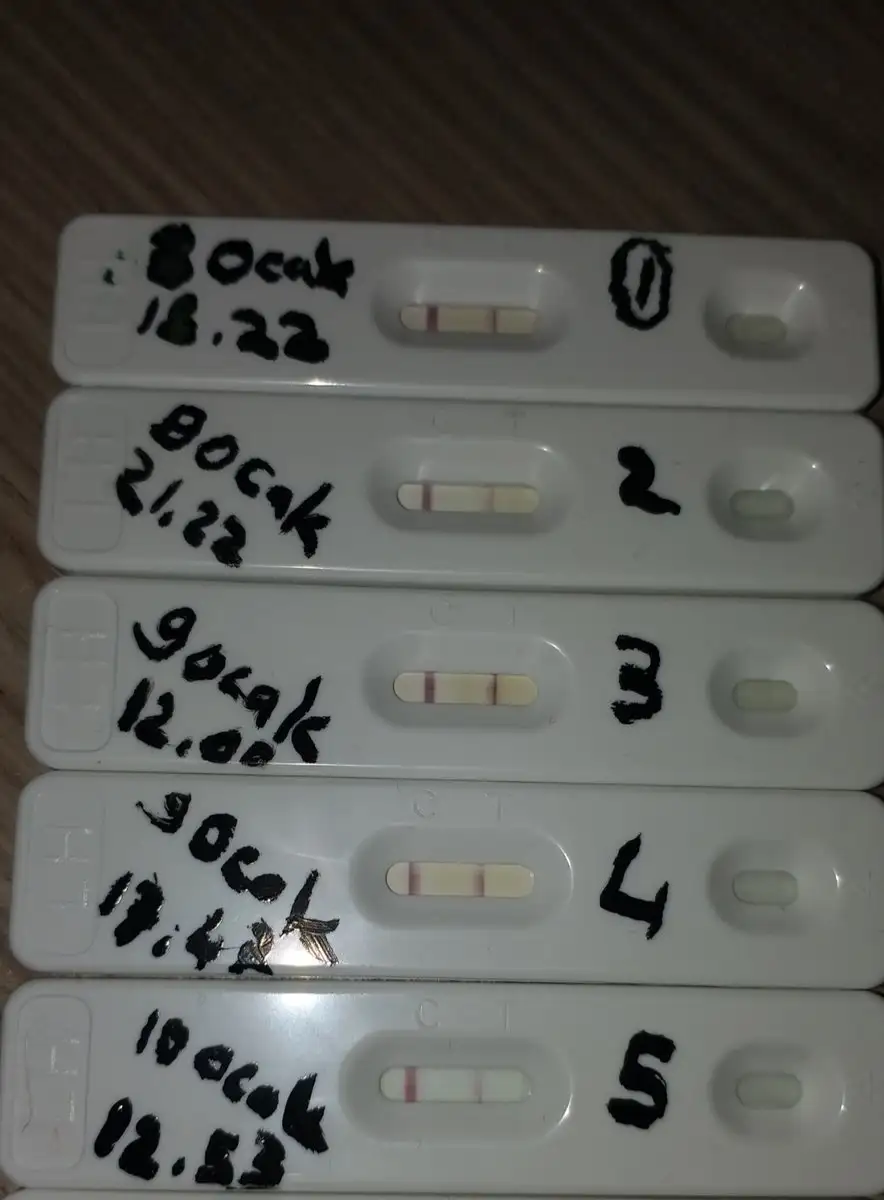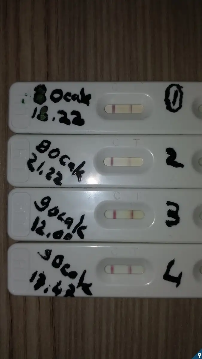 Kızlar bi bakabilir misiniz bana 9ocakta pozitif 10 ocakta çatladı dediler 11ocakta test yapmayı bırakmıştım14 ocakta tekrar yapmaya başladım silikti 15dede silik çıktı 16sında yapmadım bugun bata 6 kaldı tekrar bi yapayım dedim şüpheli geldi bana sanki koyulaşmaya başlamış gibi 11ocaktantan sonra incecik cıkıyodu çizgi bugun biraz daha kalın çıktı devam etmeli miyim sizce son anda bi yumurtlama daha gelebilir mi ki yada acaba hamilelik mi yumurtlamadan bi hafta sonra hamileysen bu çizgi koyulaşıyomuş diye okumuştum merak ettim doğrusu :oops::KK70: