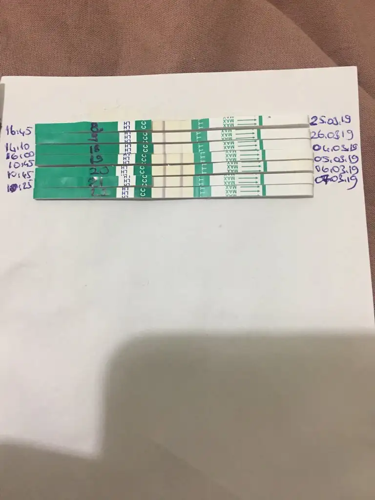 Canım anlattığın adet tarihine uyuyo şimdi hesapladım da demek ki 5nisanda pik yaptı sen kaçırdın,6da yumurtladın. 14gün sonrası da bugün işteBende anlamadım ki 26 Mart'ta adet oldum 1 Nisan da bitti doktora gittim o gun herşey iyi görünüyor dedi 6 nisanda testi yapmaya başladım ikinci çizgi vardı ama tam koyu değildi iki gün sonra tek çizgi oldu testi yapmaya devam ettim 12 nisanda ikinci çizgi tekrar beliginleşti ben koyulaşmasını beklerken 17 Nisan da çok az akıntının içinde kan vardı adetin birinci günü oluyor o zaman 18 Nisan'da lavoboya girdiğimde sadece peçeteye damla olarak geldi kesildi 19 Nisan'da akşam gelmeye başladı. Benim adet günlerim 32 olurdu en erken olduğum tarih 28.gun olurdu hep gecikirdi. Büyük ihtimalle yumurtlama erken oldu ve ben kaçırdım