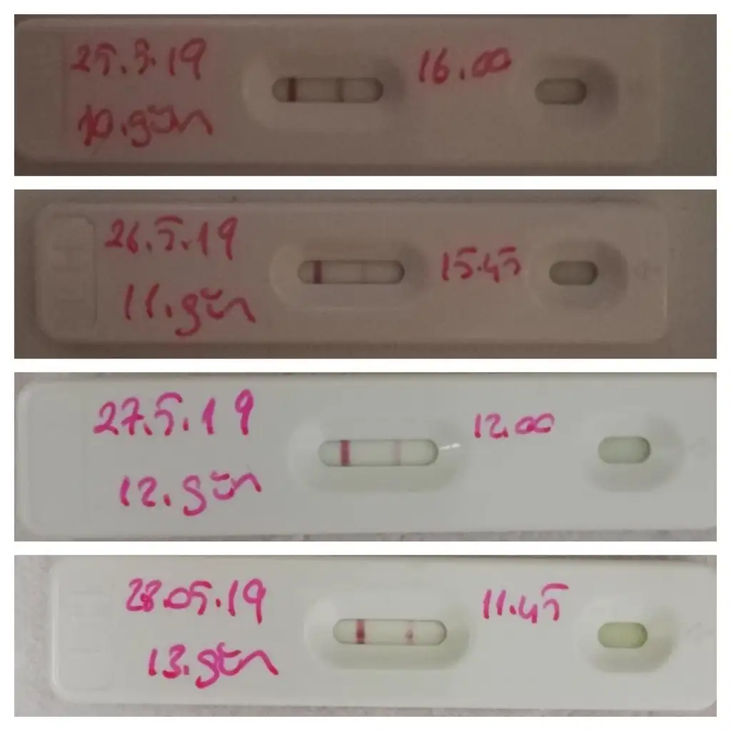 Kızlar benimde testler böyle yalnız kafamı karıştıran iki gündür uzayan bir akıntı geliyor anlamadım gitti 10. Gün yaptığım testte niyetliydim o yüzde hiç su içmeden yaptığım için koyu çıktı sanırım yoksa bu kdr erken yumurtlamam mucize olur ☺️☺️