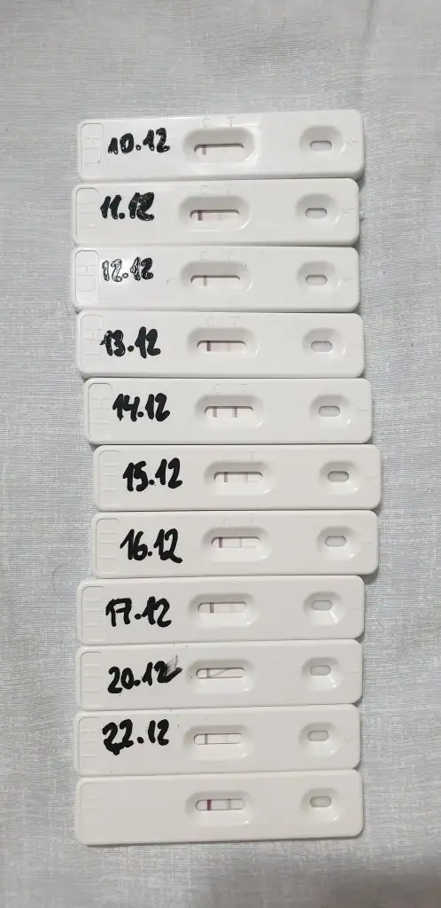 Sanmam en koyu olan gun pik yapmıştır siliklesmeye başlamış tam siliklestigi gunde degerlendirinPko lu olduğum için acaba dedim yumurtam çatlamıcak mı14 gün den beri takip yapıyorum 26 Aralık sol kasığım ağırıyordu test yaptım iki çizgi çıktı sonra silikleşti