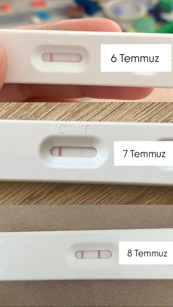 Kızlar ilk iki test 6 temmuza ait 5temmuzu 6 temmuza bağlayan gece 1.30-2 gibi ilişkimiz oldu sonra 6 temmuz akşamı 23.00 da bi ilişkimiz daha oldu 7 temmuzda da pikti ortadaki 2 test 7 temmuza ait 7 temmuzu 8 temmuza bağlayan gece 12.30 gibi bi ilişkimiz daha oldu 8 temmuz sabah ilişkimiz oldu en alttaki test de 8 temmuza ait ve 8 temmuzu 9 temmuza bağlayan gece 12den sonra bi ilişkimiz daha oldu 9 Temmuz yani bugün sabah test yaptığım da silikleşmişti çatlamış yani yumurtam ilişki olmalı mı sizce 4 gün üst üste ilişki oldu çünkü