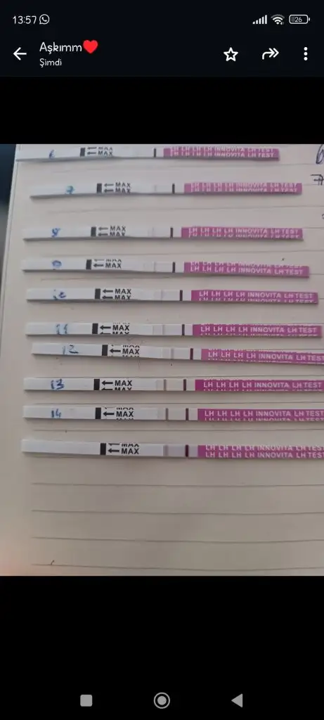 6-7 Mayıs pik oldu sonra 8 Mayıs sabah test yaptım hala pikti ,akşam tekrar yaptım pik değildi çatlamış diye yorumladım. Sonra tabi her gün gene de test yapmaya devam ettim. 10 Mayıs daha az önce yaptığım en altta ki testte iki çizgi aynı yoğun koyulukta iyice kafam karıştı gene mi yumurtlama olacak ??? Olmaması gerekir normalde ama iki çizgi bu şekilde köyü bakın pozitif değil mi? Silik olması gerekirdi