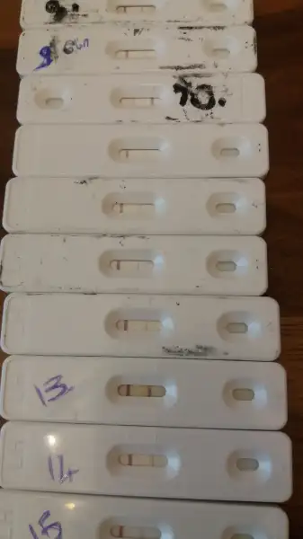 Testlerin resmini atsanabenimde 2 ekim diyo 11.güne girdim ama sabah yaptığı test koyu gibiydi akşam bir daha yapim yapim dedim silik çıktı kafamı karıştırdı sabah tekrarlicam eğer silik çıkarsa akşam tekrarlicam yine silik çıkarsa çatladığına emin olcam artık