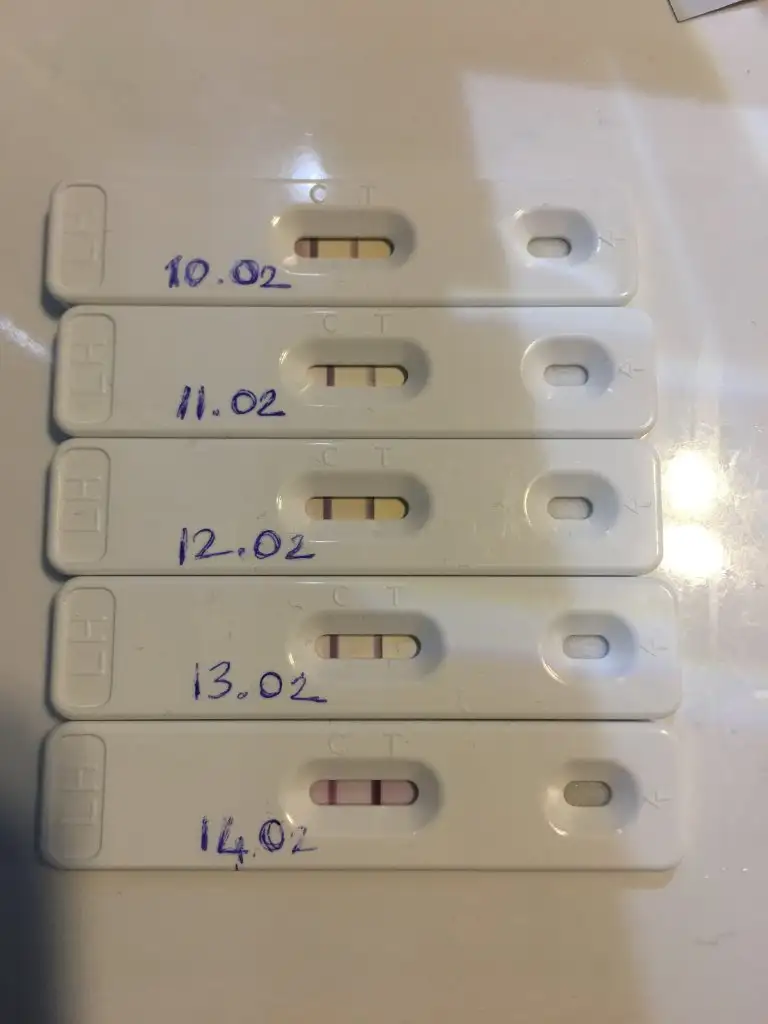 Bi gebelik testi yapar mısın lütfenBu nedir 12 sinde pik oldu dedik 13 ü yine cift cıktı. Bugün siliklesti mi bakıym dedim bugün T daha koyu cıktı
