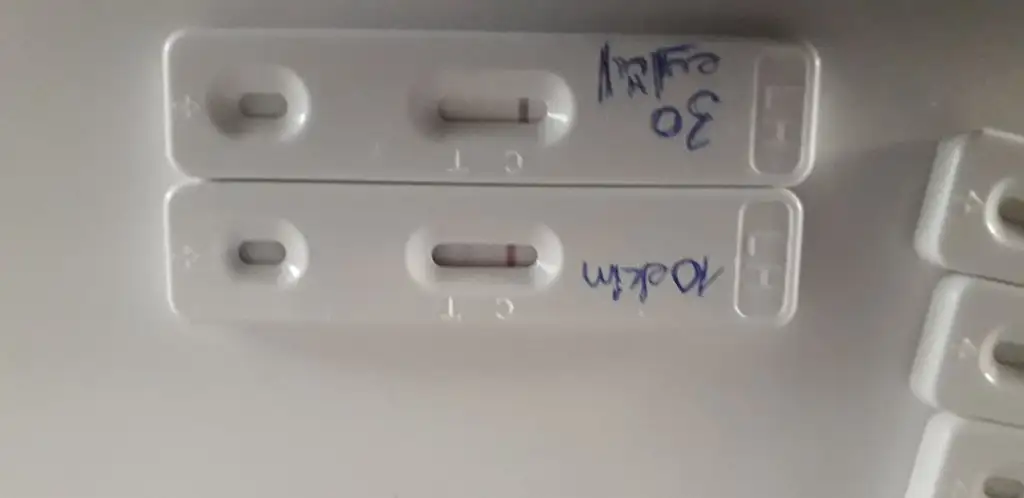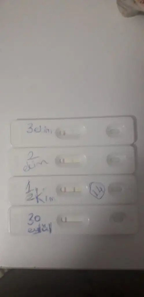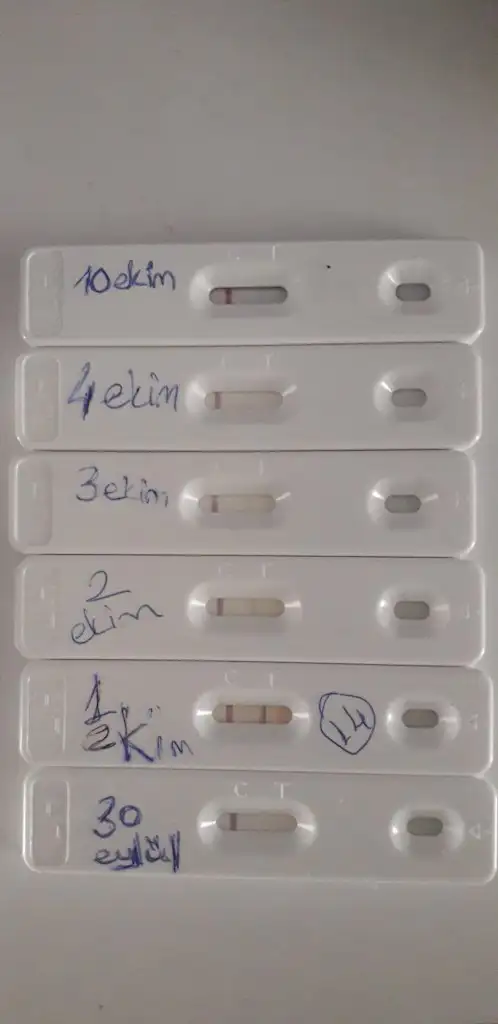 Tekrar herkese merhaba, testim bitmişti ve internetten aldım. Ebru ceylanın bi videosunda ovulasyon testi ile de gebelik anlaşılabilir diyo. 30 eylülde t komple yoktu, 1 ekim pik yaptı ve devamında azaldı. Bugün test yaptım t silik te olsa cıktı sizce bir ihtimal hamile olabilir miyim? Bat 15 ekim. Fotoğrafı yüklüyorum.