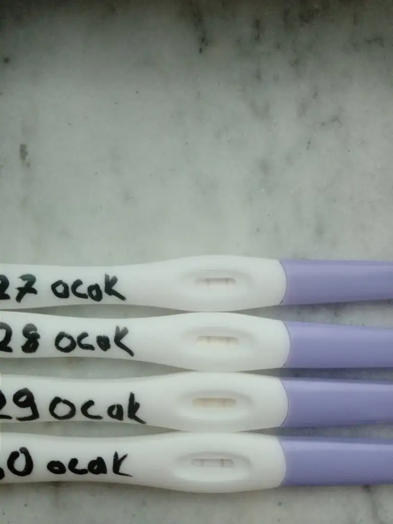 Henuz olmamis pik canim c cizgisiyle t cizgisi ayni olursa pik oluyoSelam herkese, ben bu ay ilk defa testlere basladim. Bi koyulasma var ama hafif bi koyulasma. 29 u pik olmis diye dusunuyorum ama 30 unda da devam mi ediyor, 30 u da biraz koyu gibi. Catlama olunca hafiften mi siliklesme mi basliyor yoksa tamamen siliklesmesi mi gerekirdi? Yani daha catlama olmamis midir