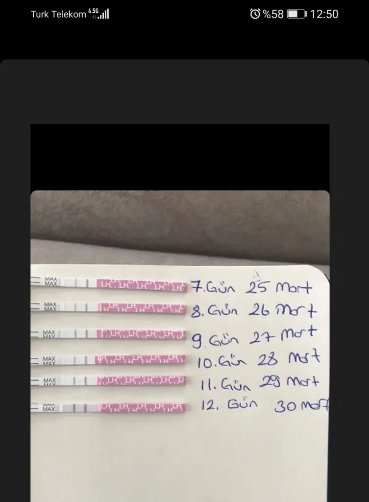 Bende ilk defa bu ay kullanmaya başladım dün belli belirsiz ikinci çizgi varken bugün 2. Çizgi çıkmadı bile. Adetin 12. Günü 35 günde bir oluyorum ve bugün şeffaf akıntım yoğundu ama testte birşey yoktu
