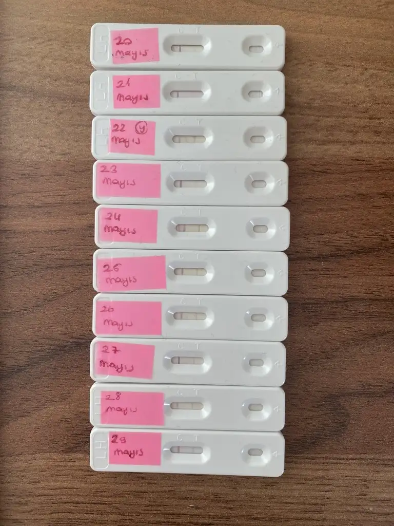 11 mayısta adet oldum 17 mayısta ovulasyon testi yapmaya başladım bugun (27 mayıs) ovulasyon testimi yorumlar mısınız 2 gün önce daha da silik bir çizgi vardı şimdi daha belirgin.