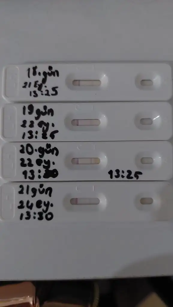 Bugün öğlen 12de yaptığım ovulasyon testi.İki çizgi de aynı koyulukta. Değerlendirdim. Yarın ve bi sonra ki günde değerlendirmek gerekiyor sanırım. Eşimde de bende de bi sorun yok. Sebepsiz infertilite. ALLAH ım isteyen her yuvaya hayırlı sağlıklı evlatlar nasip etsin bana da inşallah.