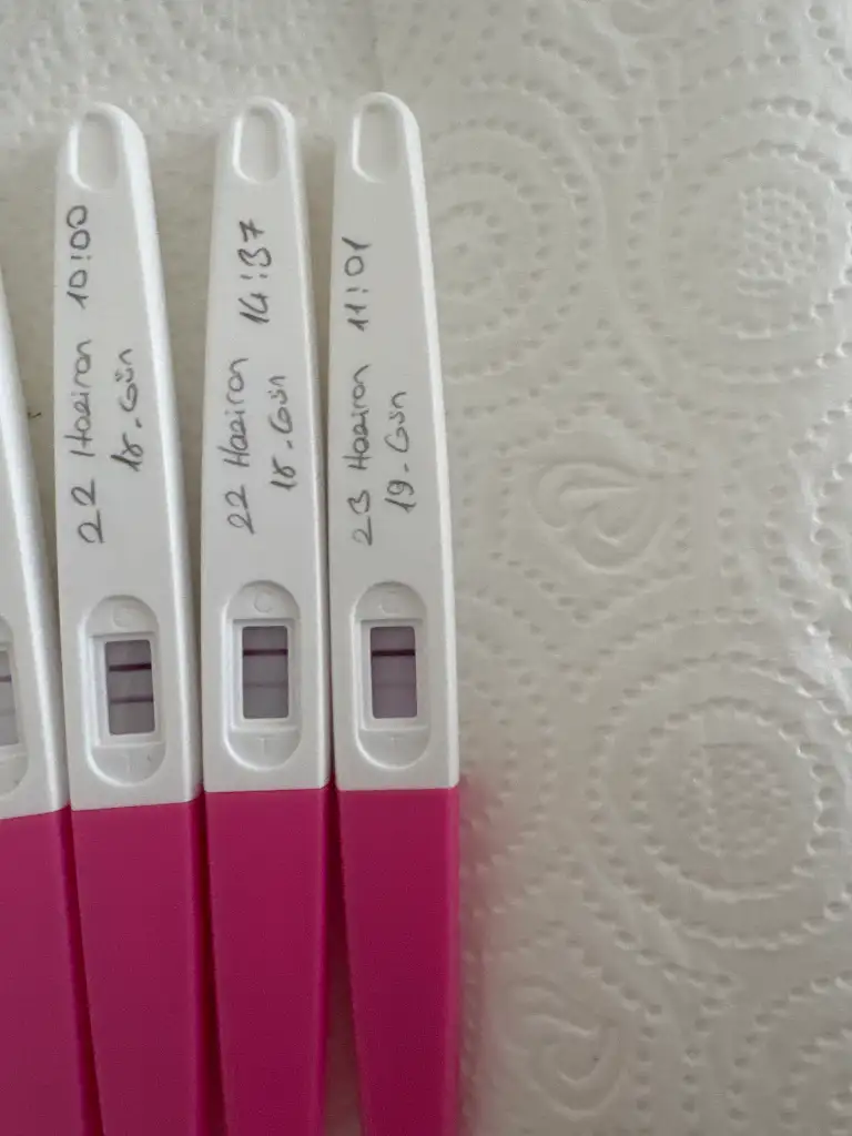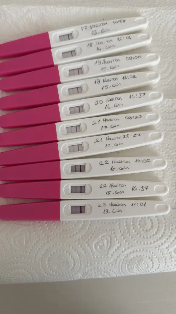 merhaba günaydın son yaptığım test reglimin başladığı günden itibaren 18. günüydü dün gün içerisinde tekrardan test yaptım silik çıktı ve sıvı alımından kaynaklı olabileceğini düşündüm bugün sabahta tekrarladım 1 saat önce ama yine o kadar koyu gözükmüyor fotoğraflarını ekledim