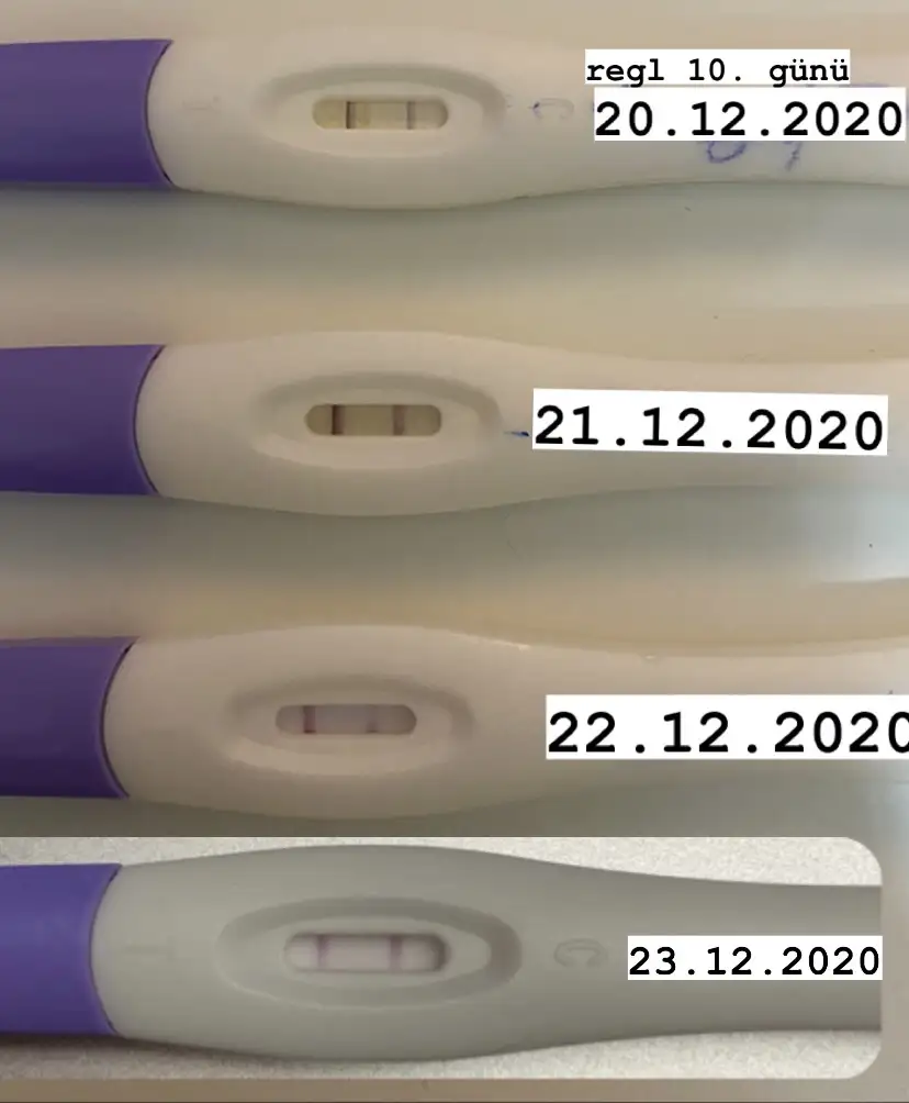 Benimde 11 Aralık pik günüydü, sonra silikleşti test yapmayı bıraktım, bi gün yine yaptım hafifi koyu çıktı sonra tekrar silikleşti ve son iki gündür koyu ilerliyor.