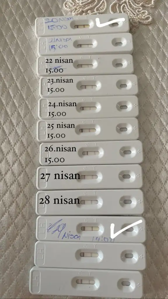 Adetten 3 gün sonra başladım ilk testim diğerleri hep öyleydi sonra 29 nisanda da diğerlerine göre koyulaşma oldu sonra yine silik oldu beynim yandı benimde bilmiyorum