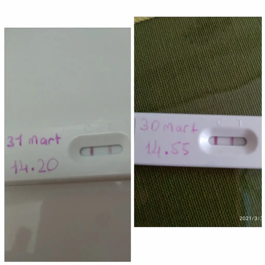 Merhaba. Geçen hafta konuşulmuş mevzu ama şimdi görünce yazayım dedim. Ben de sizle aynı durumdayım. Ovulasyon testinin varlığını öğrenir öğrenmez denemek istedim. Reglimin 16.gününde başladım yapmaya, T çizgisi 4 gün boyunca silik çıktı ve bugün daha da silindi. Ben de yumurtlama 16.günden önce gerçekleşti galiba diye yorumladım bu durumu. Fotoğraf ekliyorum bakabilirsiniz.Arkadaşlar telefona uygulama indirdim. Yumurtlama dönemim 24 Marttan başlıyor ve 29 Mart çatlama günü olarak görünüyor. Adeti düzensiz olan biriyim ama son iki ay düzenli oldu. Sadece 1 gün oynadı. 5 aylık evliyim ovulasyon testini daha yeni okudum ve bugün test alıp yaptım sonuç çok silik çıktı. Sizce geç yapılmış bir test olabilir mi? Yani çatlamış olabilir mi? O yüzden böyle çıkmış olabilir mi? Çünkü öncesinde 1 hafta boyunca test yapmadım, hesap doğruysa yarın veya diğer gün çatlama görünüyor. Sizce çatlamış mıdır? Kasık sancım ara ara geliyor yaklaşık 2 gündür. Akıntım da var. Ve dün birden karnıma şiddetli bir kramp gibi sancı girdi. Bir müddet gitmedi