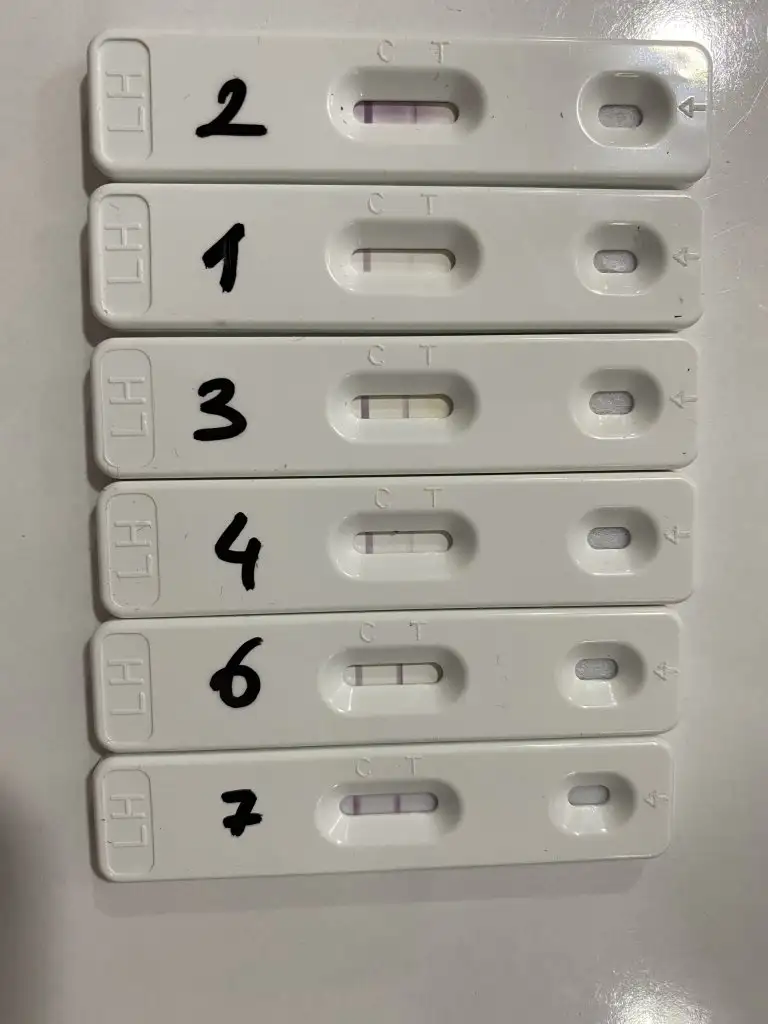 Merhaba sizce ovulasyon olmuş mudur. İlk 2 si açık olanlar saat 18.00 da yapıldı, son 2 si t çizgisi koyu olanlar dün ve bugun 10.00 da