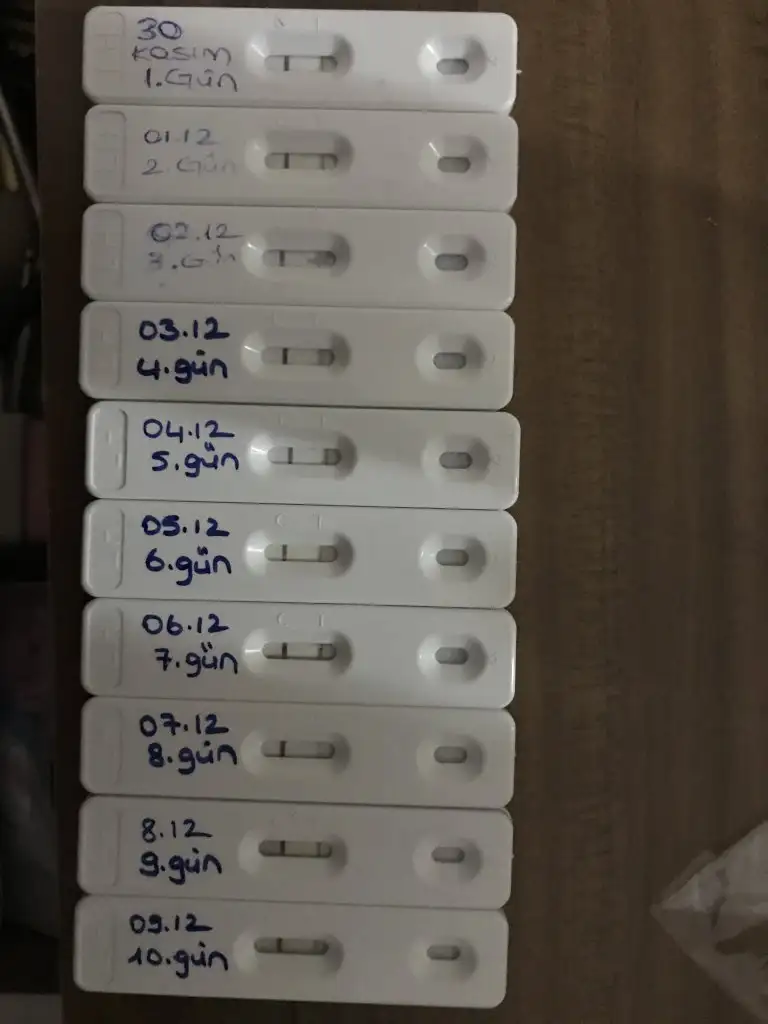 Çok haklısın canım benim, Ama 7. Gün biraz şüpheli gibi sanki bir tık koyu. Bence kaçırma ihtimalini en aza indirmek için gün aşırı en mantıklısı kuzum. Ben de bu ay yeni başladım 3. Günü yaptım bugün ama gün aşırı devamReglim de 6 gün sürdü 16.güne kadar olan testlerim bunlar digerlerini eklemedim digerlerinde T çizgisi yok denicek kadar az :) bencede henüz yumurtlamadım ama bazen çok arada kalıyorum kaçırmış olma korkusu malum