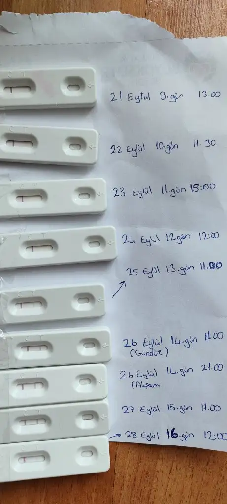 Sizinle ovulasyon günümüz aynı..T çizgisi daha koyu olmalıymış. Siz yine degerlendirseydiniz. Benim de negatif çıktı hep testim. 11 günüm de şüpheli pik oldu mu olmadı mı bilmiyorum. Hepimiz için hayırlı olsun.