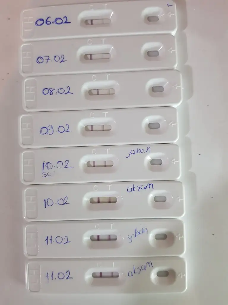 İlk kez ovulasyon testi yapıyorum kızlar. Bakar mısınız acaba? Kanamayı 1.gün sayarsak adetimin 10.günü test yapmaya başladım. Adetimin 14. Günü yani 10 şubatta sanki koyulaştı ama emin olamadım.Yumurtlama günümde miyim. 8 ve 10 şubat gününü değerlendirdik. Hala test yapmaya devam etmeli miyim? Yardımcı olursanız çok sevinirim.