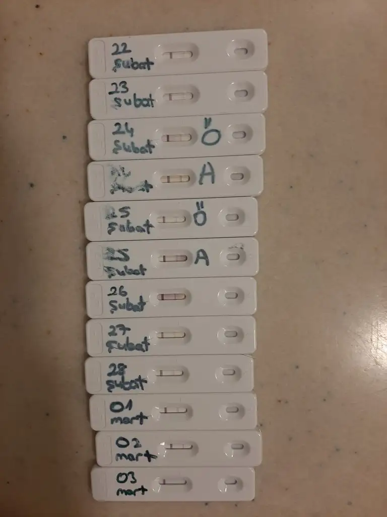 Ben bu testi kullanalı daha bir ay oldu o da 6 gün gecikti aha dedim 13 tane test artı dedim bunları kuzenime verirsim ertesi günde hastalandım 😢😢 bu ayda şehir dışına çıkıyorum 13 gün yokum o yüzden test bu ayda yapamayacağım Nisan ayında test yapmaya devam ama bu seferde testi yetmiyor baştan olacağım 😅😅