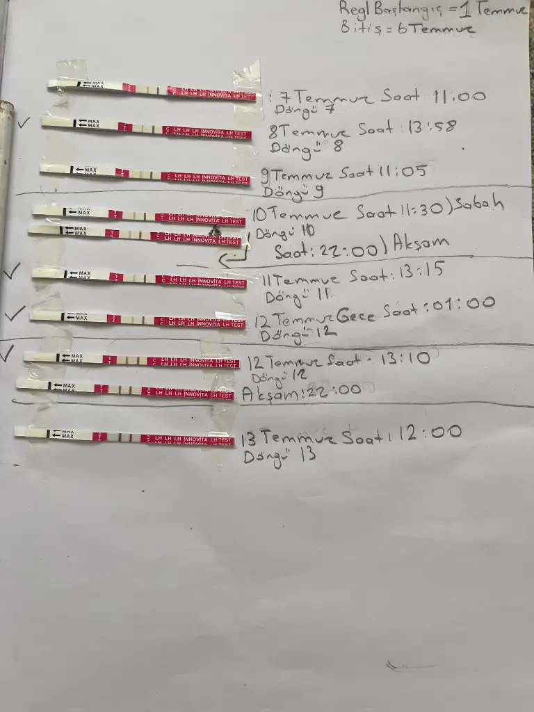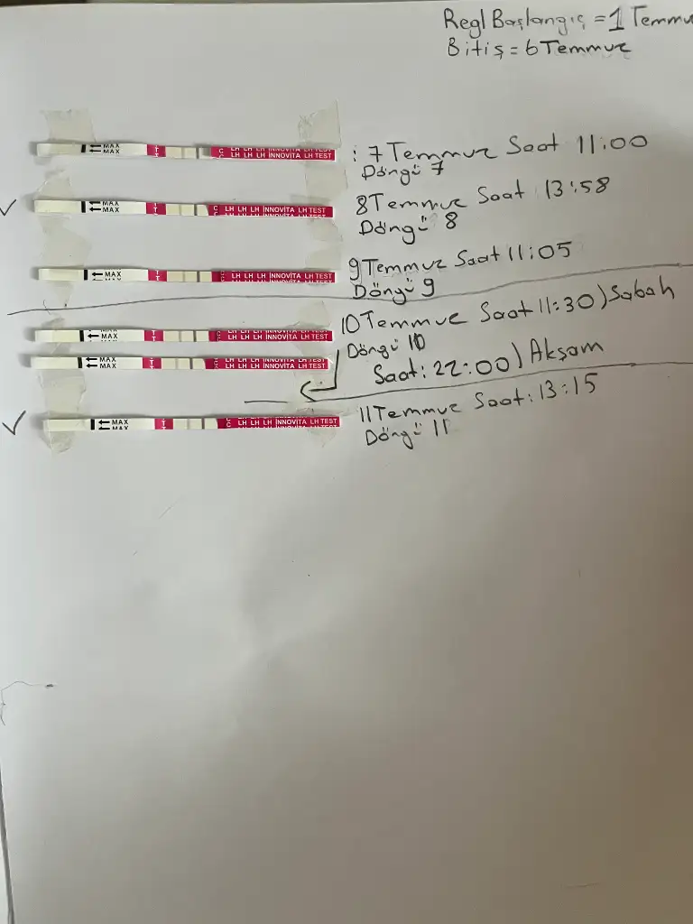Kızlar selam, ben daha önce bi kaç ay ovulasyon testlerini kullandım. Günden güne artıp pikten sonra silikleşmeye başladığını çatlamayı bu şekilde takip edeceğimi biliyorum. Ancak bu ay 7 temmuzdan beri test yapıyorum, reglim hep düzenlidir. Telefon uygulamaları tahmini 12-13ünde falan yumurtlama olacağını tahmin ediyordu çünkü reglimin 13-14. Günleri bu haftasonuna denk geliyor. Ama bugün az önce yaptığım test düne göre daha silik çıktı? Bu tam pik olmadan çatlamış anlamına mı gelir? Yoksa bu şekilde olup yine de koyulaşmaya devam eder mi? Fikirlerinizi alabilir miyim, bu arada 8-10 temmuzda ilişki oldu.